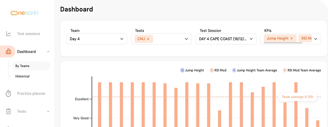 The Onescrin test library includes jumps, sprints, flexibility, and change-of-direction drills — all proven to identify injury risks and highlight performance strengths.